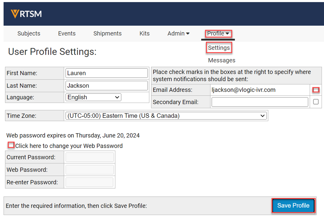 Hinweis: Die bearbeitbaren Felder im Benutzerprofil hängen von der in Ihrer Studie verwendeten RTSM -Version ab. Benutzer von Version 23r1 und höher finden die entsprechenden Beispiele im ersten Beispiel. Benutzer von Version 4 oder älter finden die entsprechenden Beispiele im zweiten Beispiel.