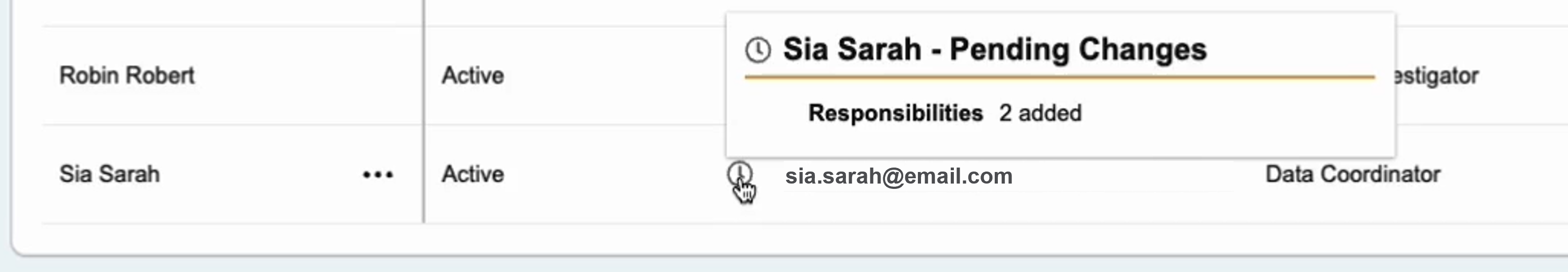 Site Connect Benutzer können zusätzliche Mitarbeiter für die Prüfzentrum erstellen und verwalten, wodurch eine Anfrage zur Genehmigung durch den Sponsor generiert wird.