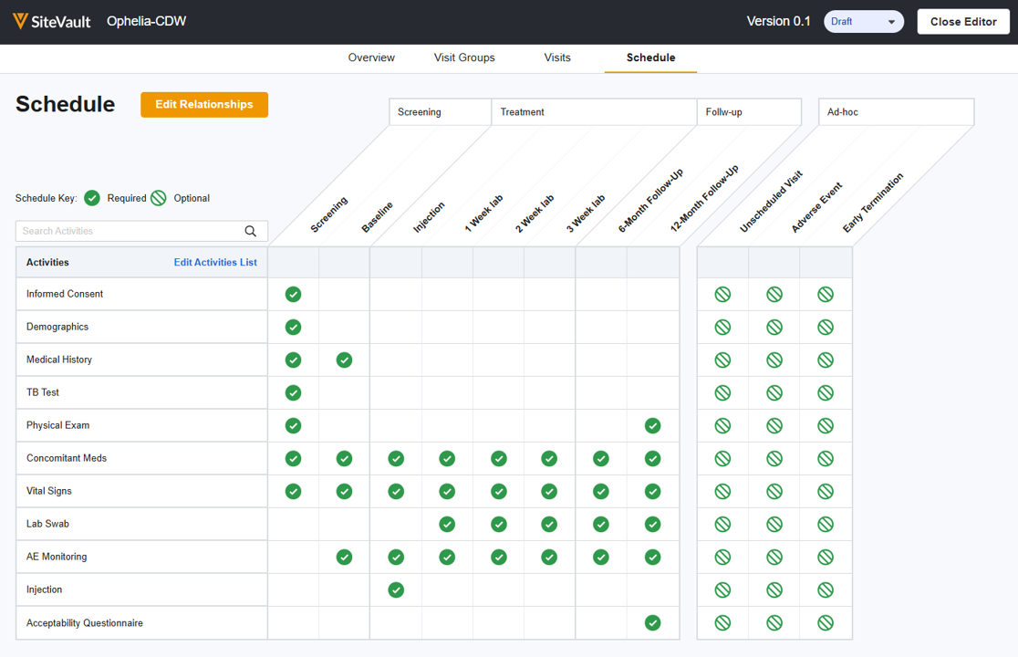 El cronograma del estudio es el plan detallado del ensayo clínico, que describe todas las visitas, procedimientos y plazos planificados para cada participante. Sirve como guía fundamental para la realización y finalización del estudio. Permite definir la estructura del ensayo, incluyendo las fases o grupos, las visitas y las actividades.