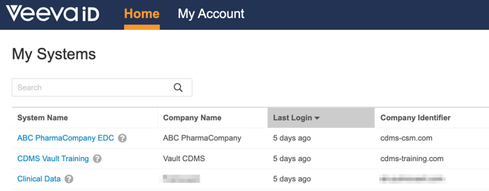 Après une connexion réussie, consultez la page d'accueil de VeevaID et sélectionnez le Vault vous souhaitez accéder.