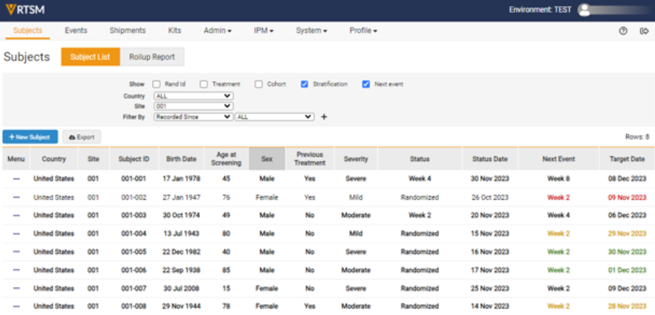 - 노란색: 해당 대상은 목표 날짜를 넘겼지만, 다음 이벤트를 기록할 수 있는 기간 내에 있습니다.