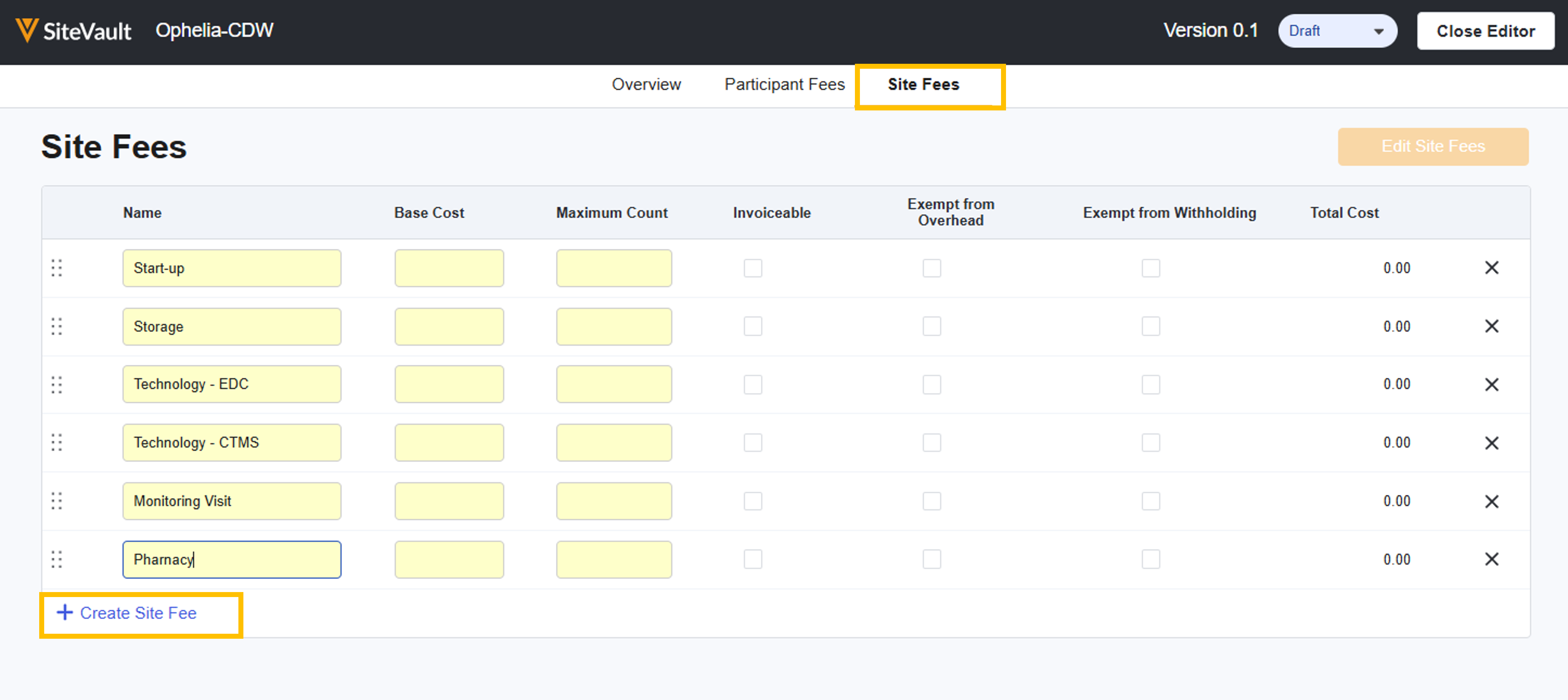 - Herhaal de bovenstaande stappen om extra sitekosten aan te maken.