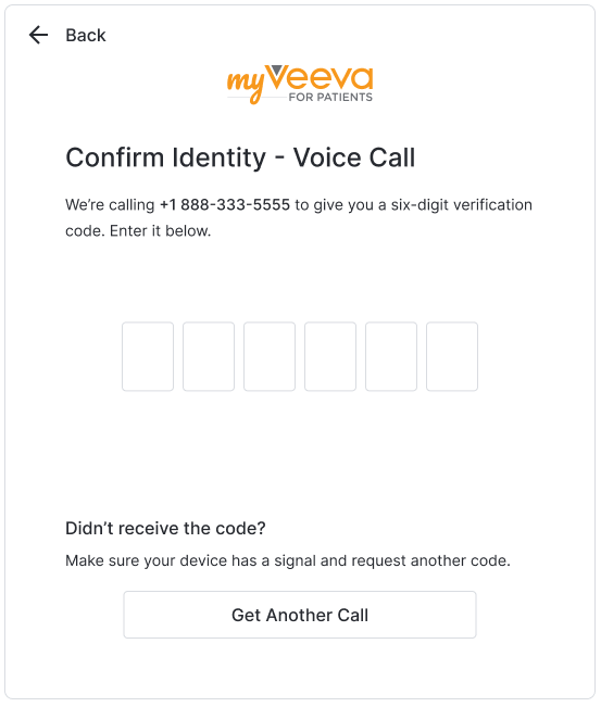 Odbierz połączenie telefoniczne i wpisz podany numer na stronie Potwierdź tożsamość - Połączenie głosowe.