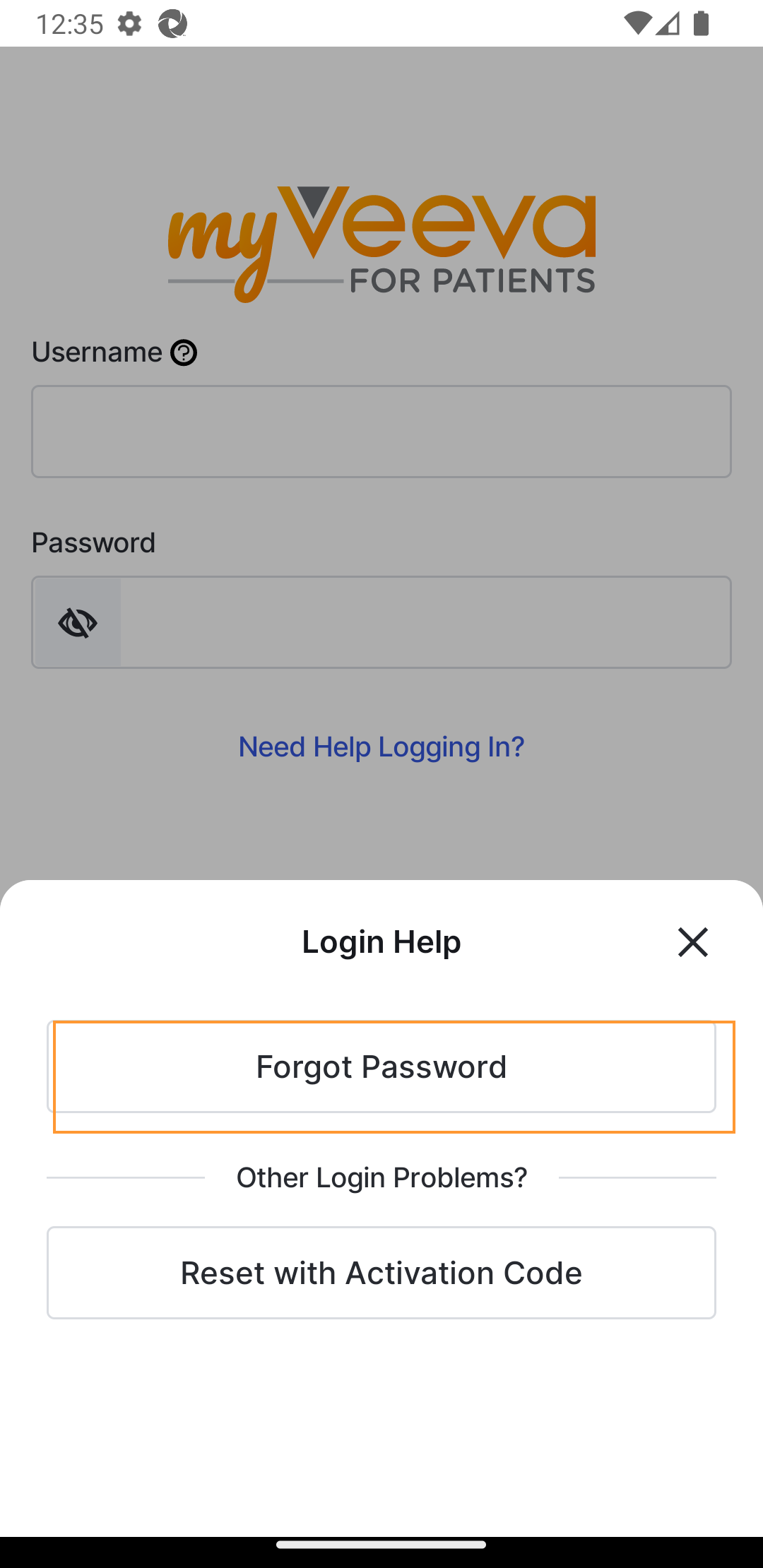 Rejestracja została ukończona i jesteś zalogowany w MyVeeva for Patients. |