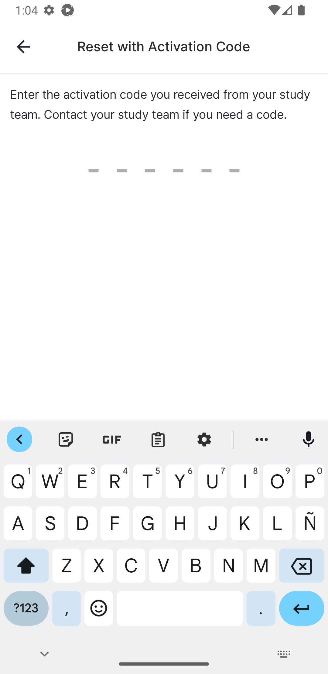 Skontaktuj się z zespołem badanie, aby uzyskać kod aktywacyjny, a następnie wybierz opcję