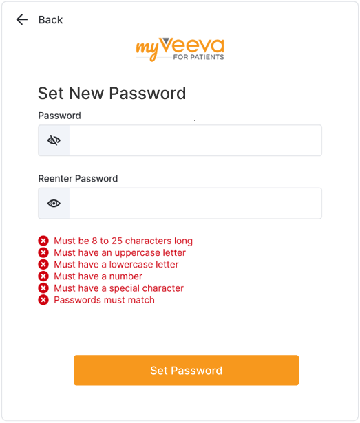 Rejestracja została ukończona i jesteś zalogowany do MyVeeva for Patients. |