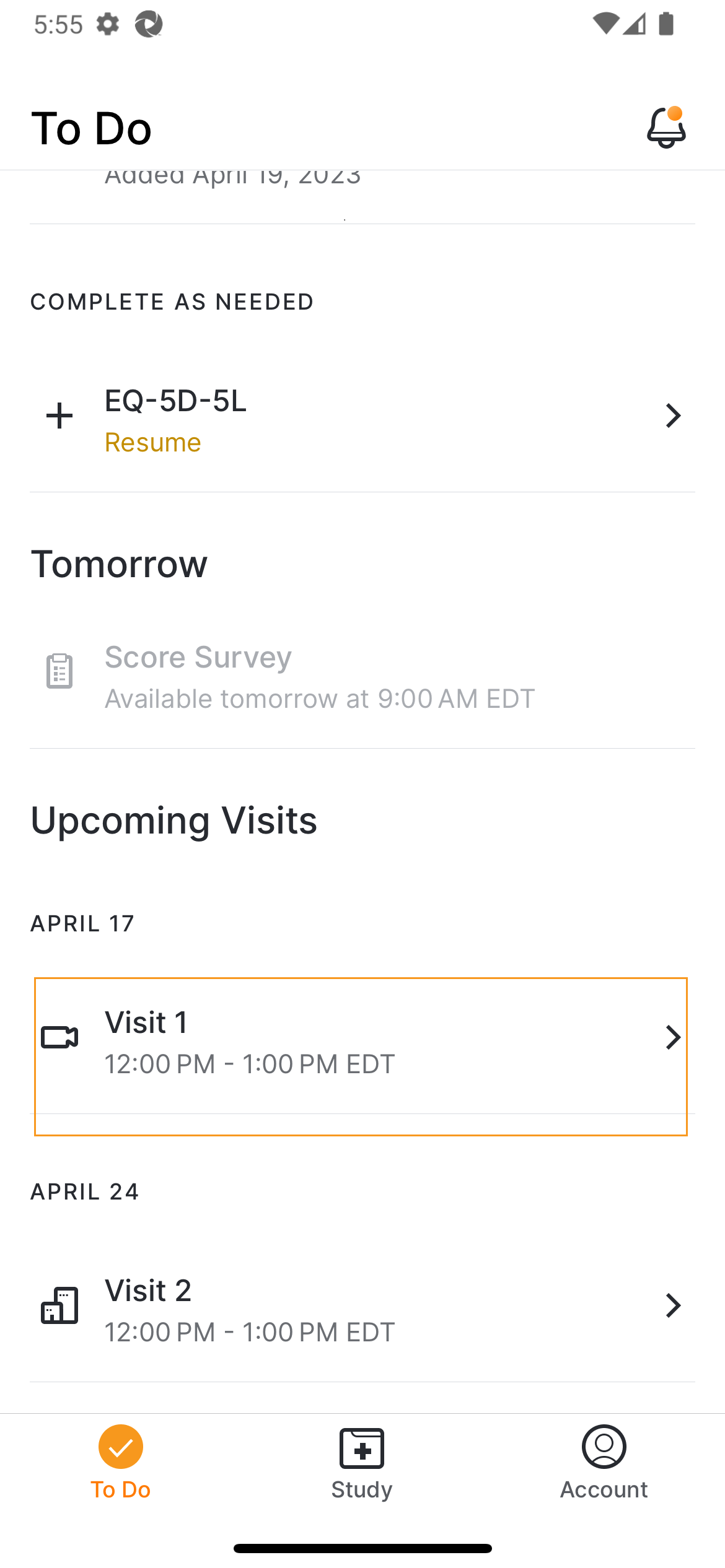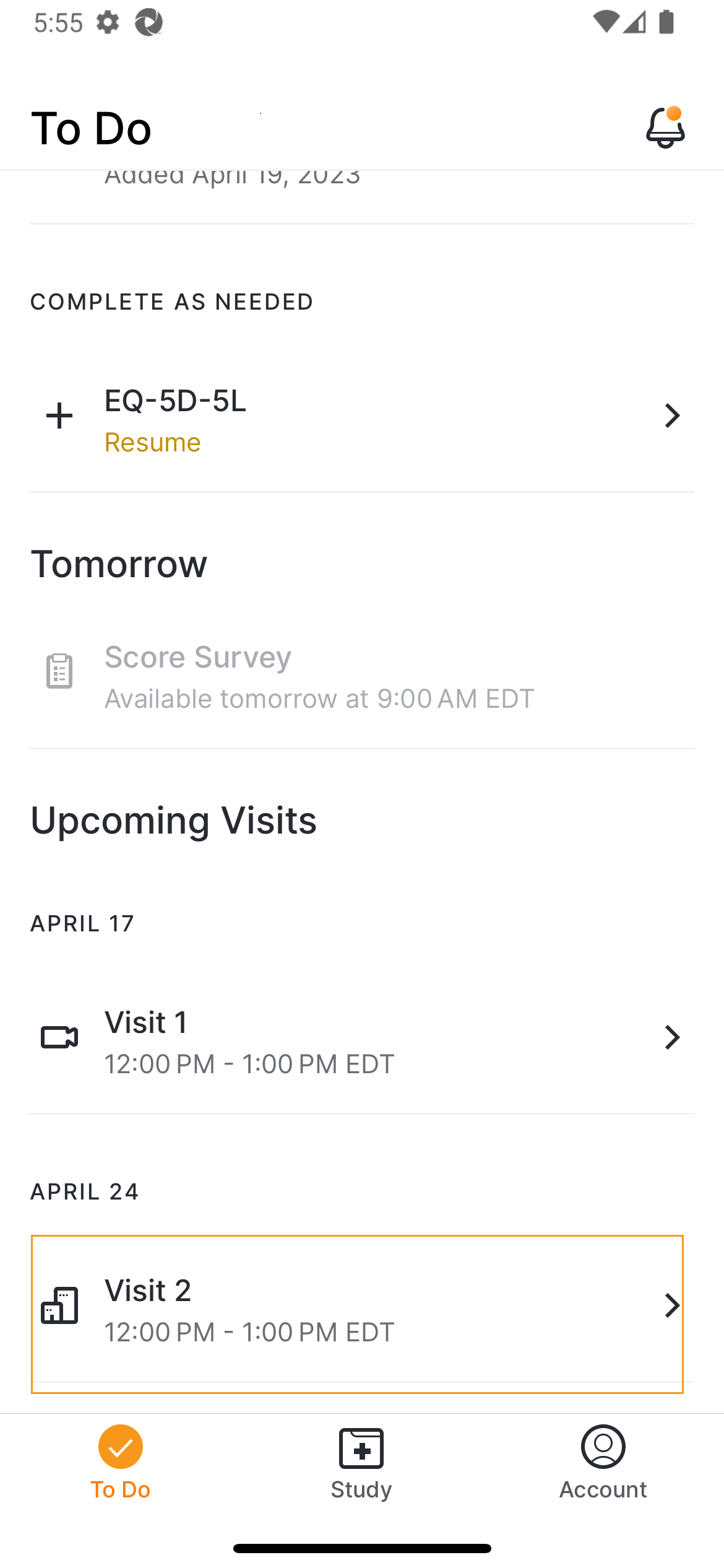 Użytkownik MyVeeva for Patients może przeglądać informacje o wizytach w gabinecie i dołączać do wideowizyt w aplikacji. Jeśli zmienisz lub anulujesz wizytę, system powiadomi uczestnika o zmianie i zaktualizuje lub usunie wizytę w aplikacji. Wszystkie wizyty, do których zaprosisz alias kalendarza uczestnika MyVeeva, są wyświetlane na stronie „Do zrobienia”.