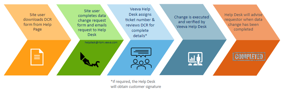 Veeva i Sponsor/CRO wskazali na formularzu DCR rodzaje zmian, o które można wnioskować, oraz które z nich wymagają podpisu klienta