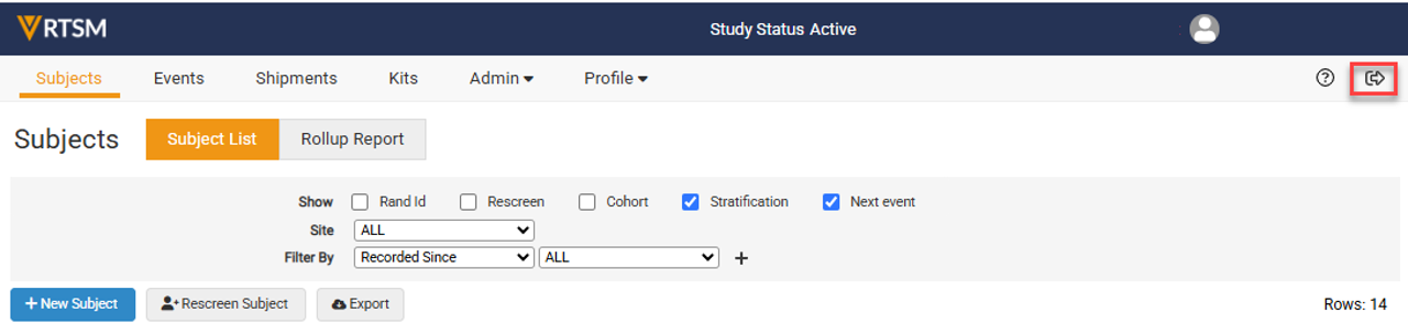 - Korzystając z adresu URL podanego dla konkretnego badanie, przejdź do ekranu logowania RTSM.
