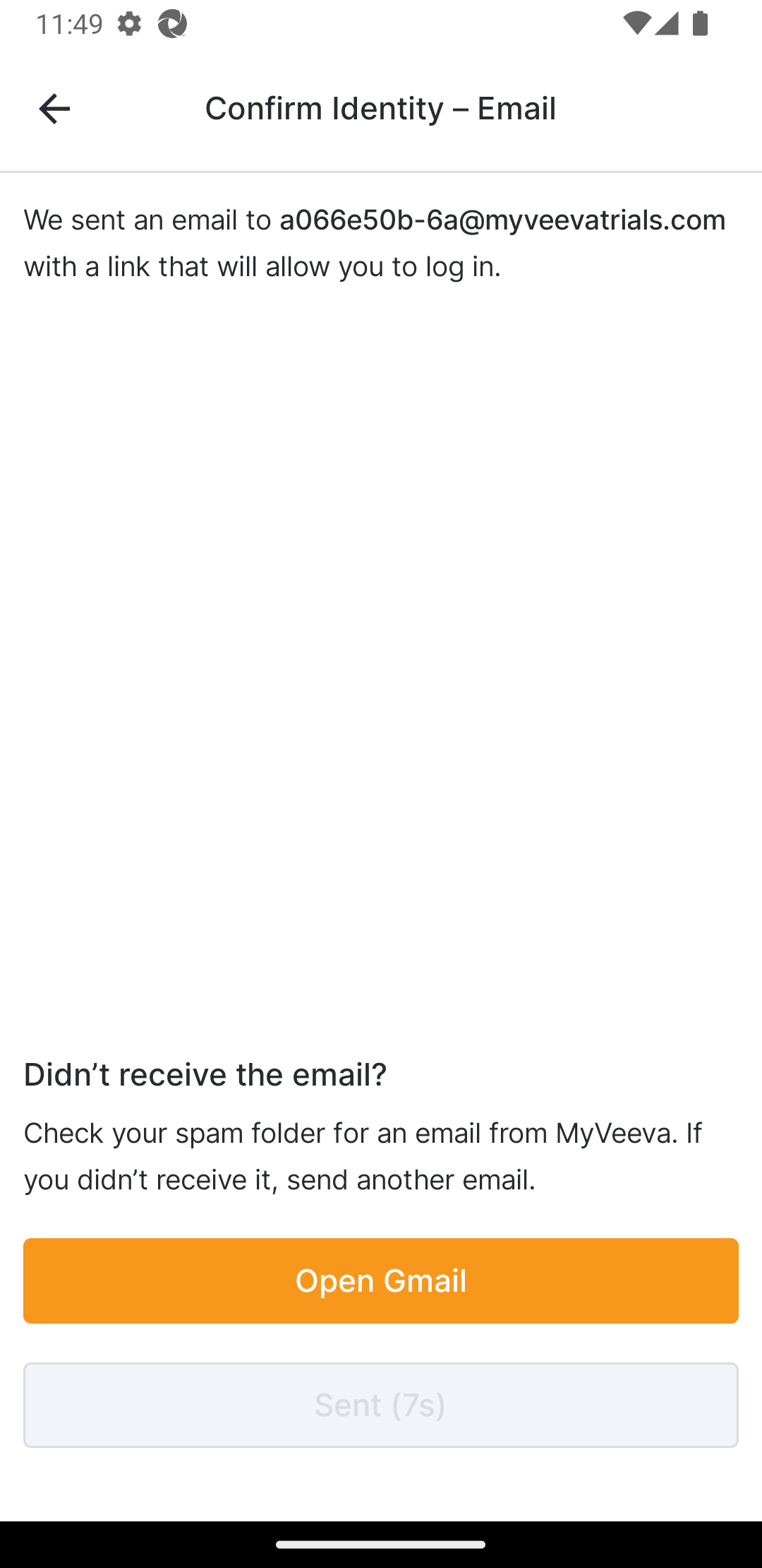 Sprawdź swoją skrzynkę e-mail, aby znaleźć link i wybierz go. Jeśli weryfikacja zakończy się pomyślnie, w aplikacji MyVeeva for Patients pojawi się komunikat „Tożsamość potwierdzona”.
