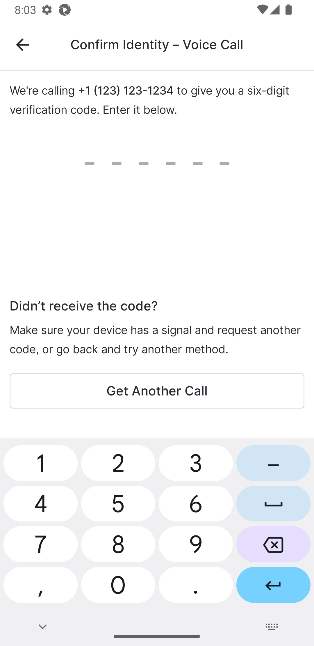 Odbierz połączenie telefoniczne i wpisz podany numer na stronie Potwierdź tożsamość – Połączenie głosowe.