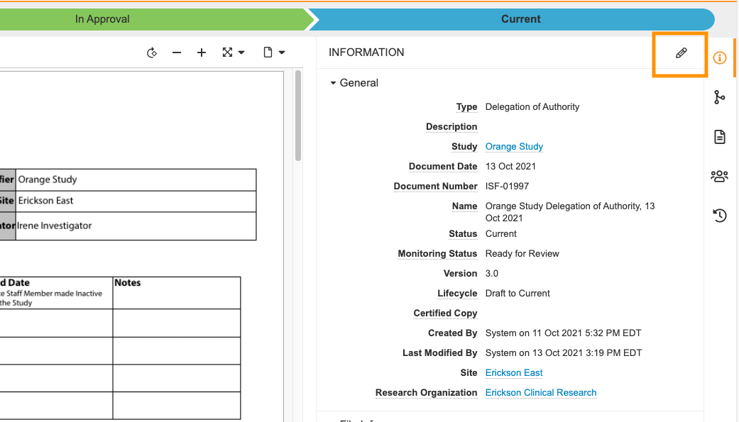 Jeśli chcesz edytować informacje (pole) w dokumencie, przejdź do dokumentu, otwórz go i wybierz ikonę Edytuj
