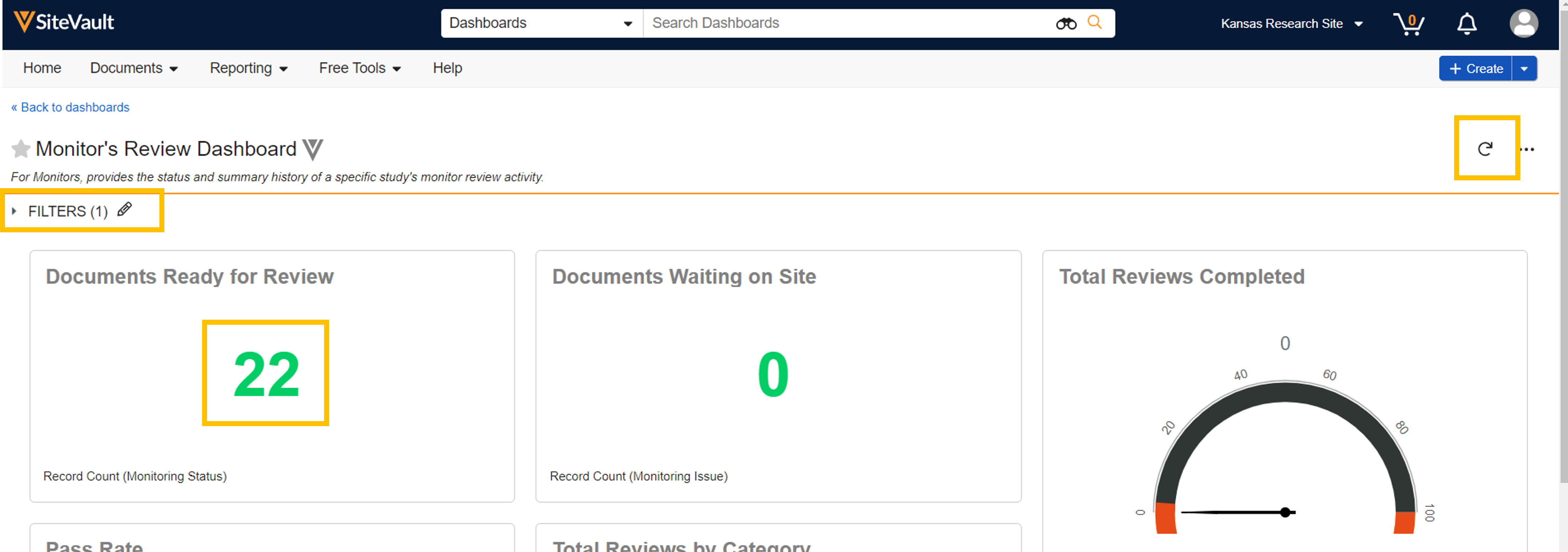 Przejdź do Raportowanie > Panele i otwórz Panel przeglądu Monitora. Wybierz badanie, a następnie widżet Dokumenty gotowe do przeglądu. Ten raport wyświetla listę wszystkich dokumentów gotowych do przeglądu.