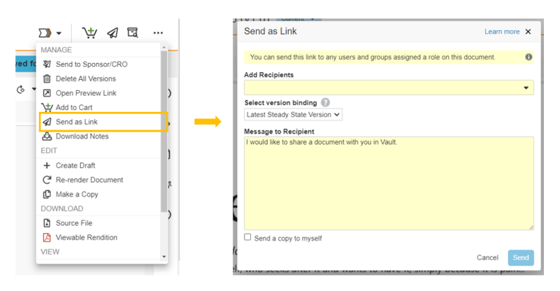 Wyślij jako link Opcja „Wyślij jako link” wysyła wiadomość e-mail z powiadomieniem do wybranych użytkowników, która zawiera hiperłącze do określonej wersji dokumentu. Linki można wysyłać do dowolnego użytkownika lub grupy, której przypisano rolę w dokumencie. ← Edycja tabeli w linii Skróty klawiaturowe →