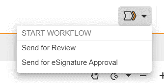 Po lewej stronie paska akcji znajduje się ikona szewronu, która zapewnia szybki dostęp do dowolnych działań użytkownika lub przepływu pracy zdefiniowanych dla bieżącego stanu cyklu życia. W niniejszej dokumentacji ikona ta jest nazywana menu działań przepływu pracy.
