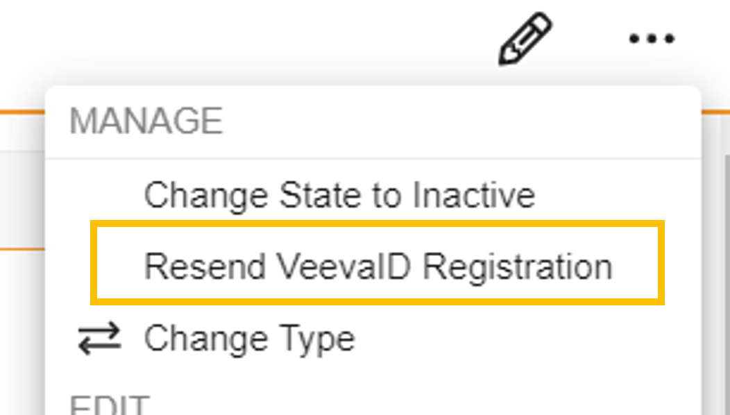 - Wybierz opcję „Wyślij ponownie rejestrację VeevaID” z menu „Wszystkie akcje”. Komunikat banerowy potwierdzi zakończenie akcji.