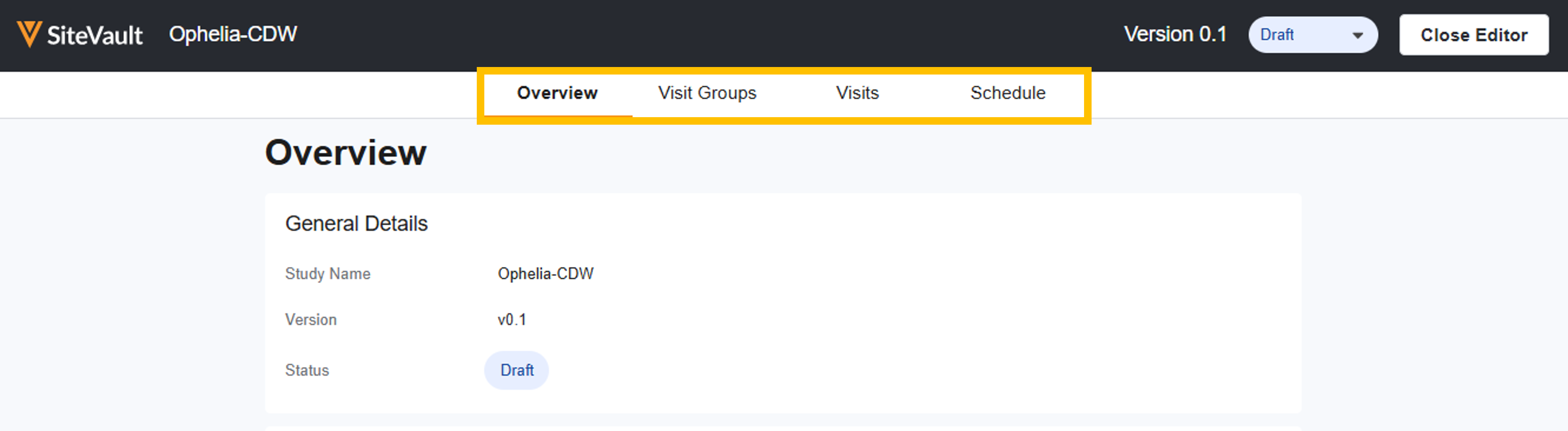 O cronograma do estudo é o plano detalhado do ensaio clínico, descrevendo todas as visitas, procedimentos e cronogramas planejados para cada participante. Ele serve como um roteiro fundamental para a condução e conclusão do estudo. Ele permite que você defina a estrutura do seu ensaio, incluindo fases ou grupos, visitas e atividades.