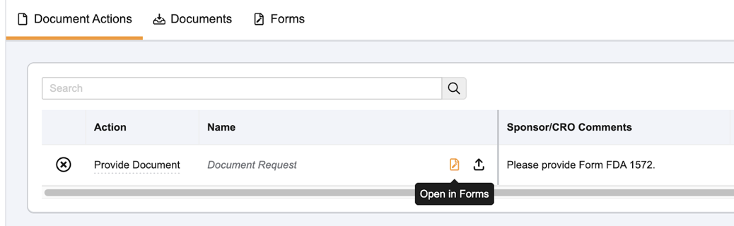 When a Sponsor or CRO requests a 1572, you can generate one on the Forms tab.