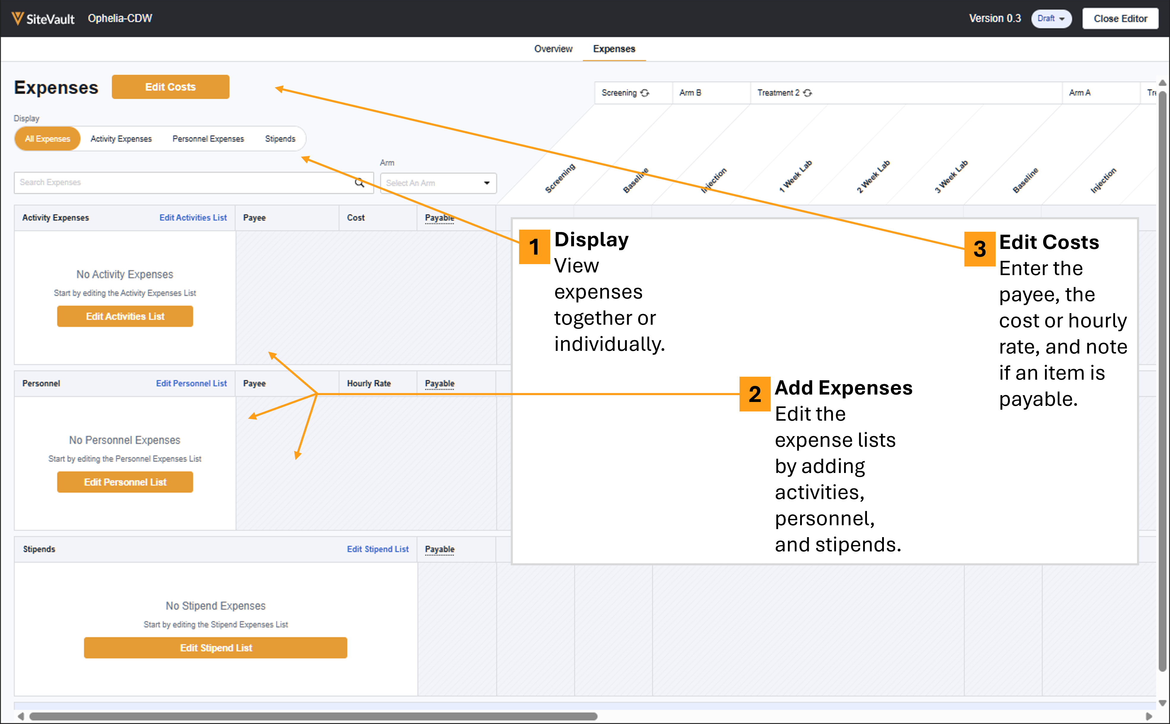 - Activities: Expenses associated with study activities.