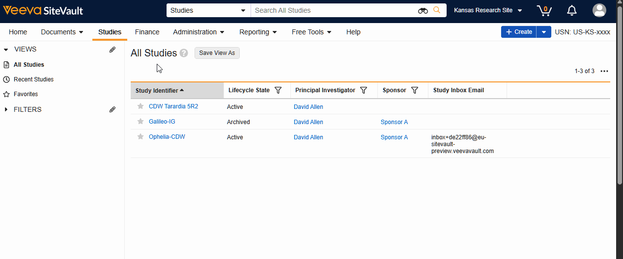 2. For the appropriate study, double-click in the Disable Site Connect Autofile for Docs column. If the column is not visible, select All Actions (…) > Edit Columns to add the needed column.