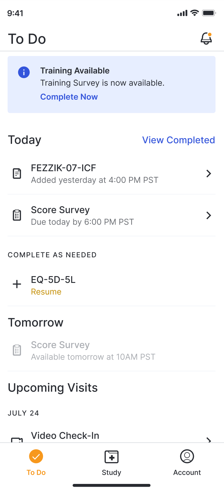 Користувачі можуть відповідати на анкети опитувань у цьому додатку, і їхні відповіді є конфіденційними. Опитування стають доступними залежно від обраних вами дат подій. Коли користувачеві потрібно пройти опитування, він отримує сповіщення про це на свою електронну пошту або в додатку. Конкретні сповіщення, які вони отримують, залежать від того, як спонсор налаштував дослідження та push-сповіщення користувача.