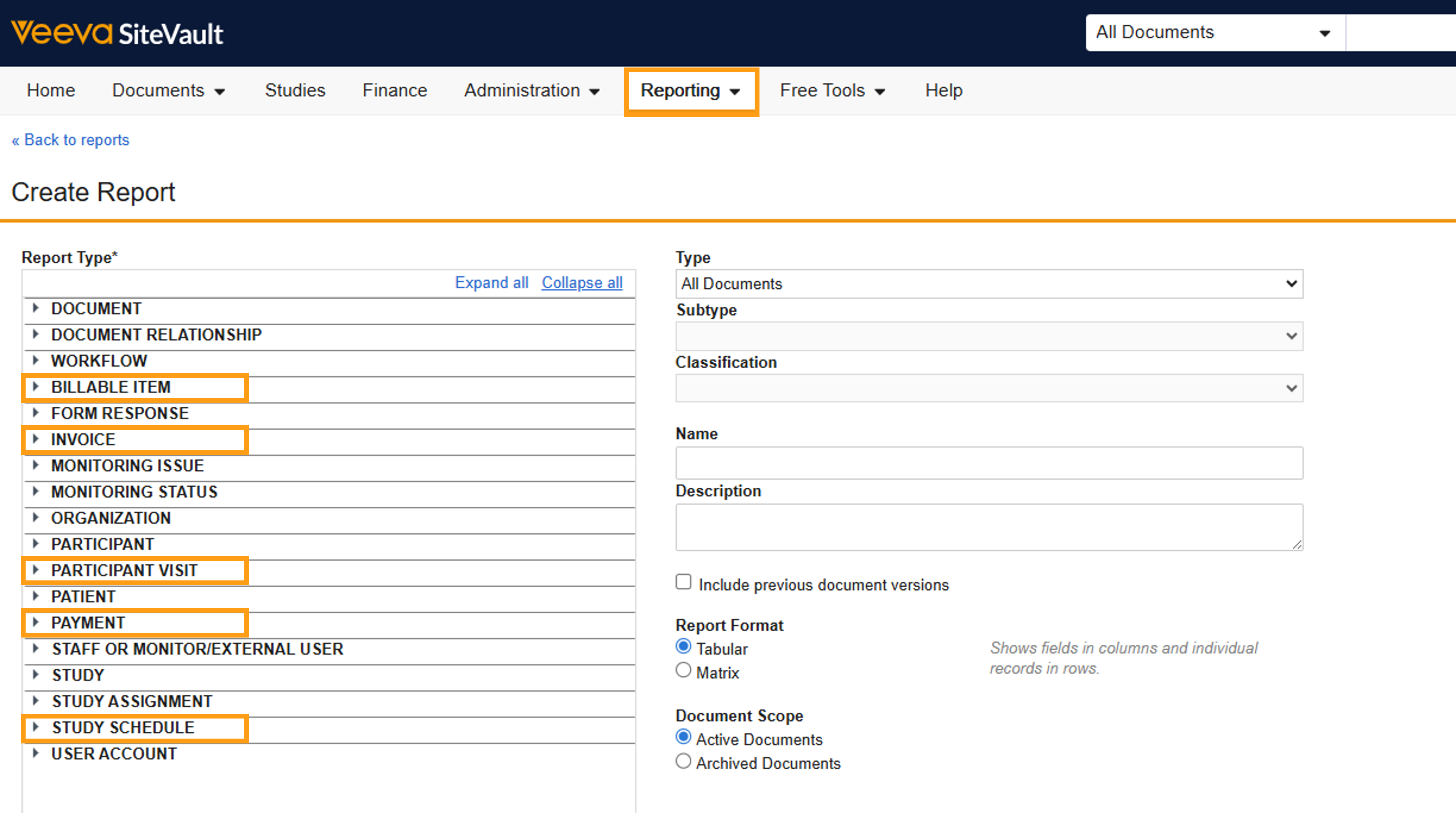SiteVault CTMS містить інструменти для створення різних типів звітів, специфічних для CTMS.
